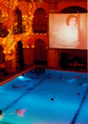 entering this steamy museum of pools and saunas, you are instantly envel-oped