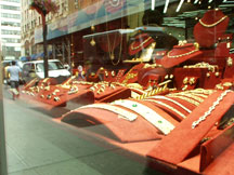 Like the proverbial diamond in the rough, Manhattan’s Diamond District surfaces in the midst of the busy city with an undeniable ability to detour unsuspecting passers-by. At each end of the block, two enormous steel spears topped with pilates-ball sized diamonds herald the entrance to the Diamond District. Beyond these Valkyrian gates, both sides of the street are lined with retail jewelers whose window displays burn brighter than the lights of Broadway. And like spotting the entire Off-Broadway cast of Naked Boys Singing in costume, you may just have to stop and stare.
