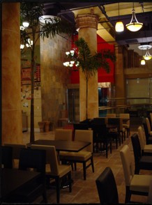 Mr. Pizza Factory also serves many other traditional Italian appetizers and entrees in a capacious space, compete with Doric columns, and paintings of the Hollywood Hills and the rustic, Italian countryside on the walls. There is also an upstairs room that can be reserved for special events.